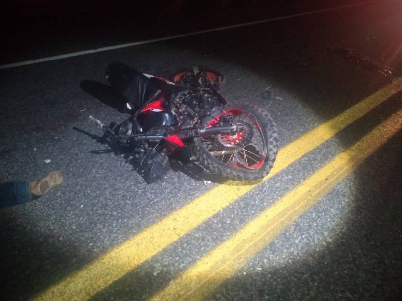 A tres metros de los «cuerpos», había una motocicleta deztrozada en la cual viajaban y fueron embestidos por un tráiler.