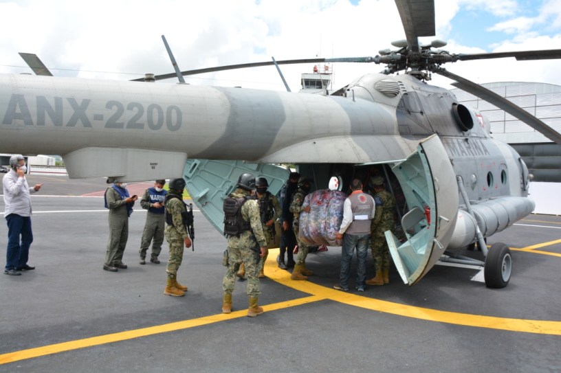 En la ciudad de Xalapa, personal del DIF Estatal y la Secretaría de Protección Civil (PC) cargó con víveres, cobertores y kits de limpieza un helicóptero Mi-17 de la SEMAR, que habrá de llevarlos para su entrega en Chumatlán, Coyutla, Espinal, Filomeno Mata y Mecatlán. A esto se sumarán otras 1.5 toneladas de insumos, aproximadamente, que llegarán vía terrestre.