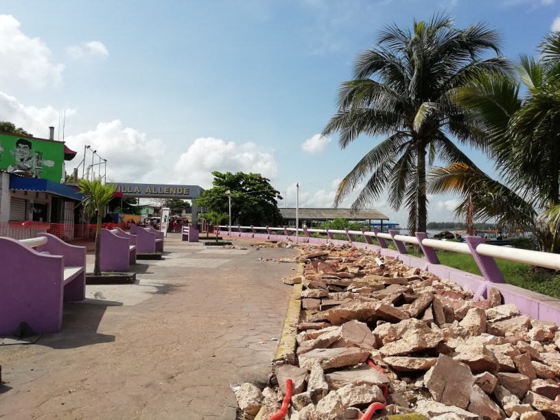 Debido a los trabajos de rehabilitación y ampliación del malecón Rivereño de villa Allende, los comerciantes de mariscos asentados a la orilla del río Coatzacoalcos fueron reubicados ayer al camellón central de la calle Zamora de villa Allende.