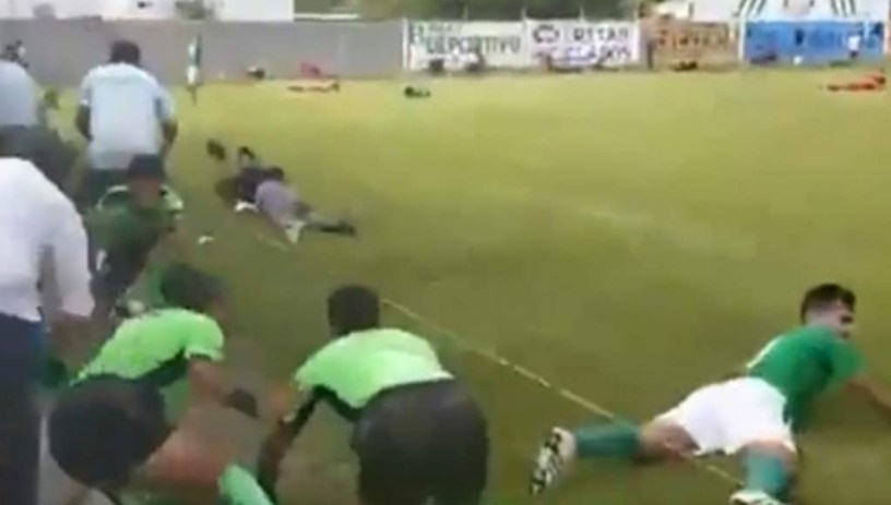 “¡Tírense al suelo!, ¡al suelo!, ¡al suelo!, ¡abajo!, ¡abajo!”, repetían árbitros, futbolistas y asistentes que se tiraron al piso en el césped de la cancha mientras se escuchaban los balazos.