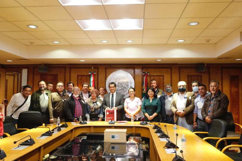 El presidente de la Cámara de Diputados, el veracruzano Sergio Gutiérrez Luna, recibió de manos de representantes del Sindicato Mexicano de Electricistas (SME) y del Movimiento Nacional de Usuarios de Energía Eléctrica más de 53 mil firmas de apoyo a la propuesta de Reforma Eléctrica del presidente Andrés Manuel López Obrador.