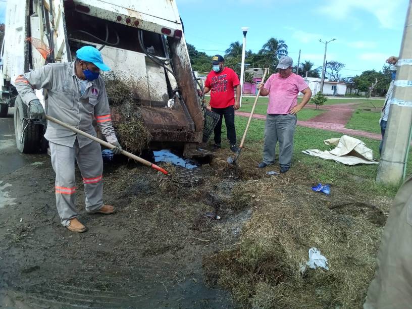 Con el apoyo del personal de limpia pública y los camiones recolectores de basura se retiró el matorral acumulado de la calle Quevedo esquina Jesús García hasta la avenida Independencia.
