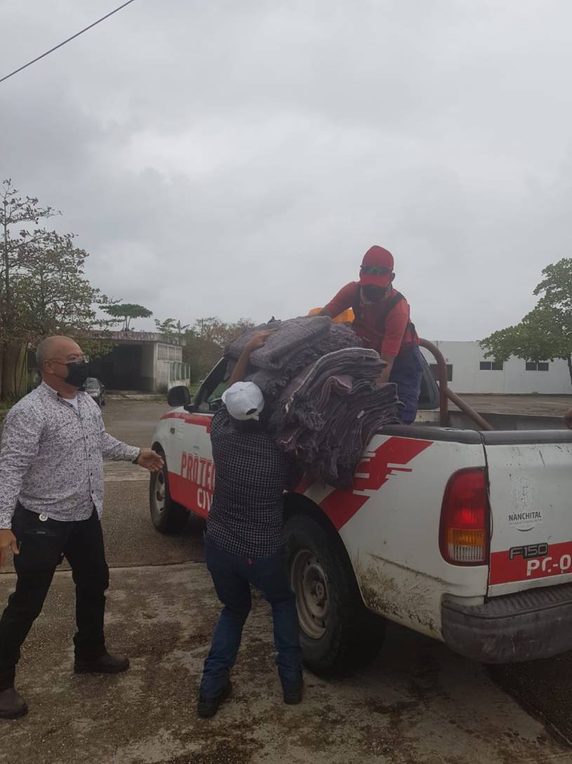 Nanchital, Ver. Como parte de los recorridos permanentes por distintos sectores del municipio, personal de Protección Civil ha ubicado y entregado apoyos a personas en situación vulnerable, quienes están padeciendo por las constantes lluvias y bajas temperaturas.