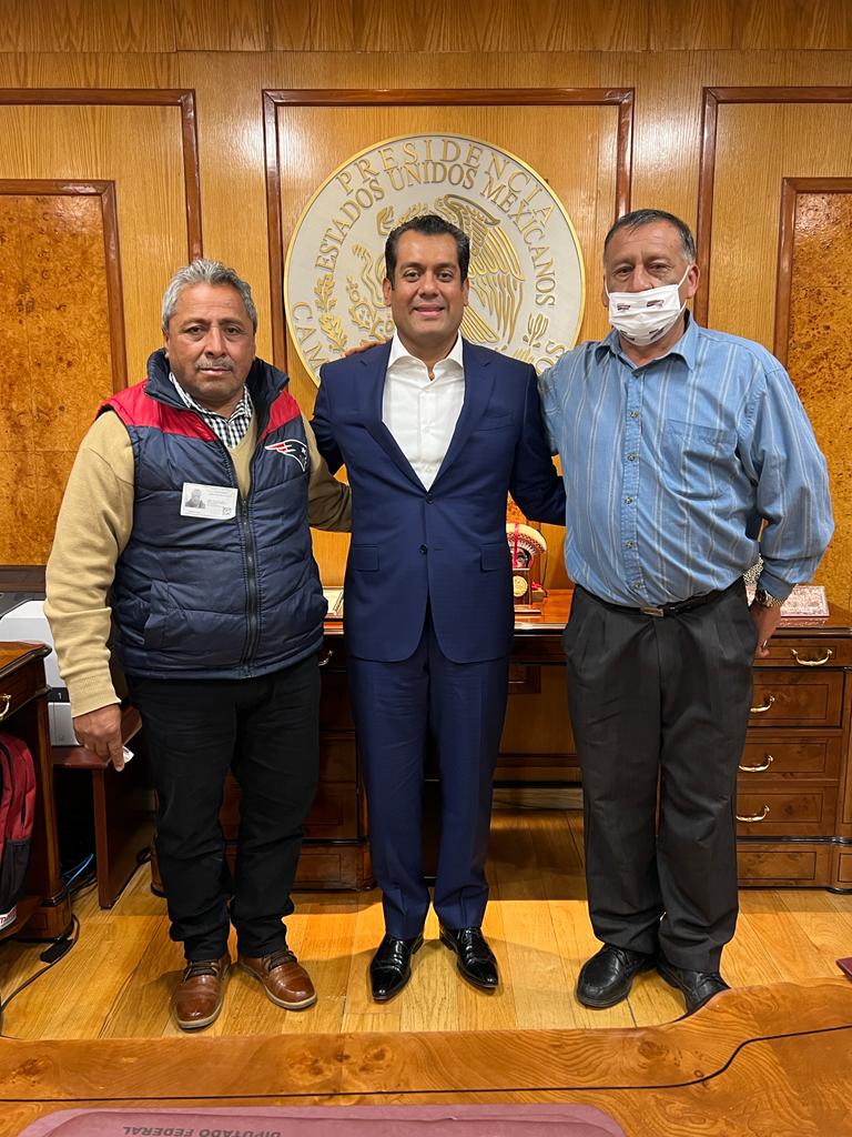Ciudad de México, 26 de febrero de 2022.- El presidente de la Cámara de Diputados, el veracruzano Sergio Gutiérrez Luna, se reunió con dos destacados dirigentes de Morena en el distrito de Martínez de la Torre: Cirilo Orduño Camacho y Marco Antonio Melgarejo Bonilla.