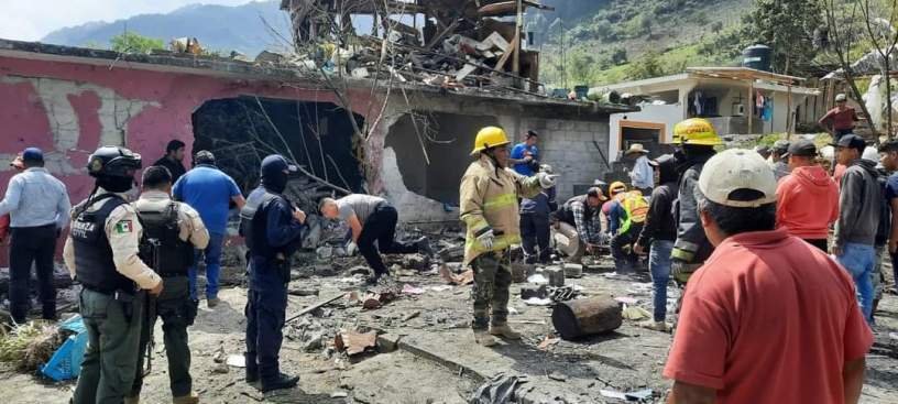 Elementos de la SSP brindan auxilio a las personas afectadas por la explosión de pirotecnia que era resguardada en una casa asentada en la población de Xicola, perteneciente al municipio de Alpatláhuac, en la zona serrana de Coscomatepec.