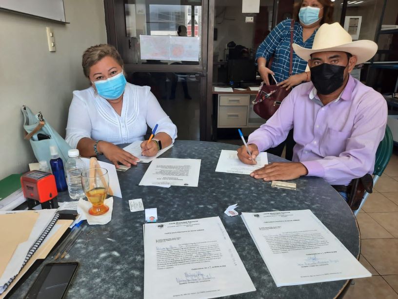 Al continuar abierto los tiempos de registros en la Junta Municipal Electoral de Coatzacoalcos, Pepe Montalvo en compañía de su suplente la maestra Adriana Geraldine Uc Hernández oficializó sus aspiraciones para participar en la elección para agente este próximo domingo 3 de abril.