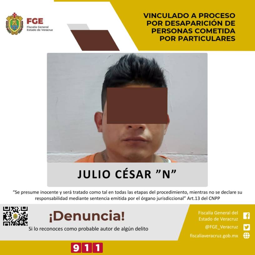 Julio César “N” fue vinculado a proceso por su probable participación en el delito de desaparición de personas cometida por particulares en agravio de la víctima identificada con las iniciales E.A.A.C.