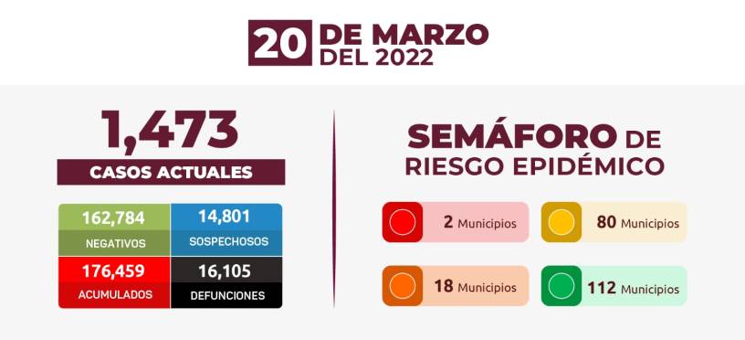 Ahora son mil 473 positivos y 180 sospechosos activos, al tiempo que van 158 mil 889 pacientes recuperados y permanecen en vigilancia mil 465.
