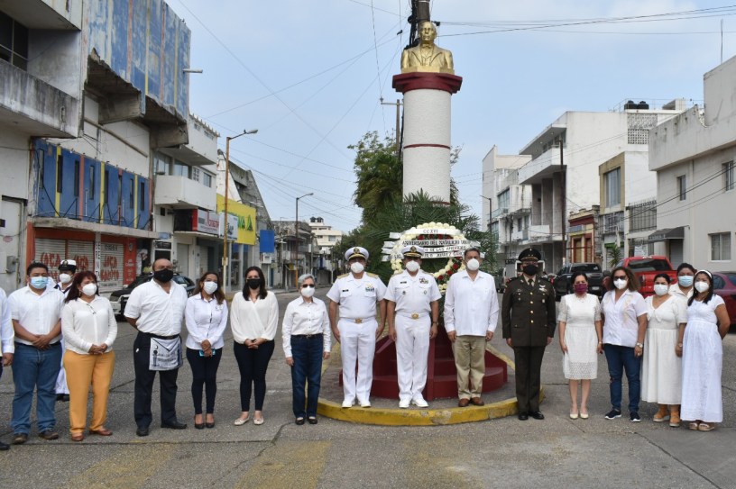 Previo al evento, el Alcalde, acompañado de la Diputada Federal, Tania Cruz Santos, la Síndica, Regidores, autoridades militares, navales, educativas y representantes de las Logias Masónicas, también colocaron ofrendas florales a los bustos del Benemérito, ubicados en la Plaza Cívica, el Malecón Costero.