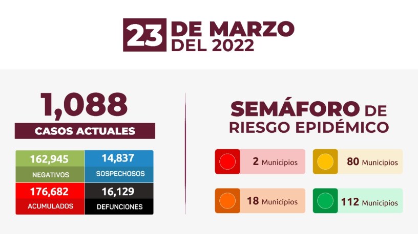 Ahora son mil 088 positivos y 172 sospechosos activos, al tiempo que van 159 mil 470 pacientes recuperados y permanecen en vigilancia mil 083.