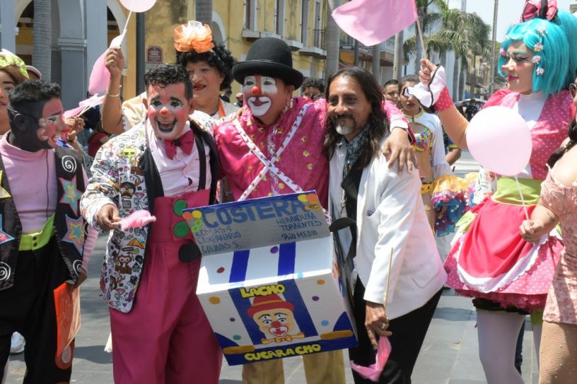 «Lacho el cucaracho» realizó un colorido y entusiasta papaqui que comenzó en el Zócalo porteño con la participación de payasos, payasitas, comparsas y batucada, para dirigirse a las oficinas del Comité Organizador.