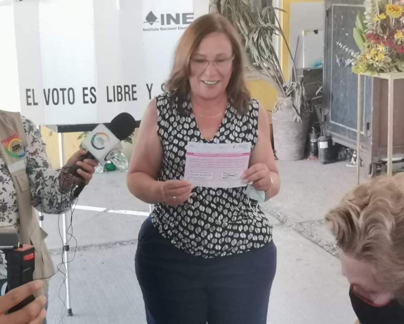 Coatzacoalcos, Ver. – Antes de las 10:00 horas de este domingo, la secretaria de energía Rocío Nahle García acudió a emitir su voto en la casilla instalada en la colonia Puerto México en Coatzacoalcos, dónde estuvo acompañada del alcalde Amado Cruz Malpica y de la diputada local Eusebia Cortés Pérez.