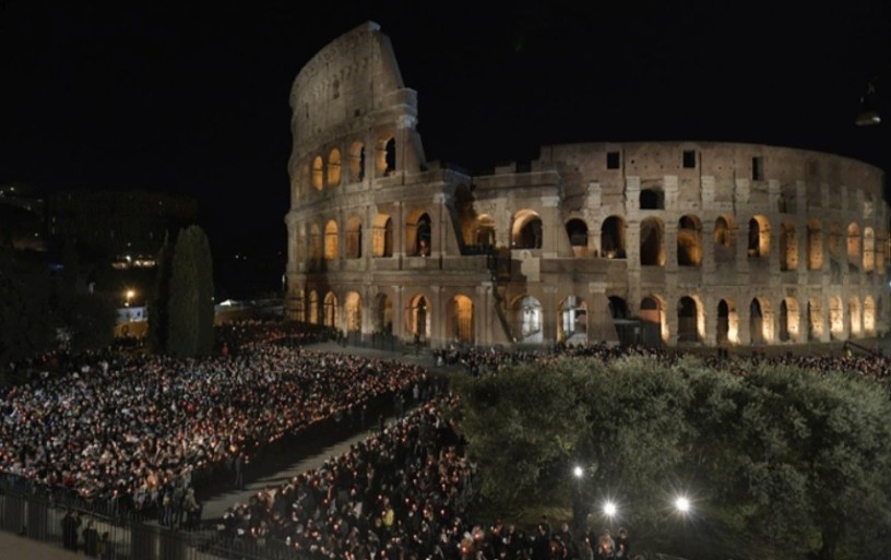 Unos 10 mil fieles acogieron al papa Francisco en el Coliseo de Roma, donde presidió el Viacrucis de Viernes Santo, en el Coliseo Romano, después de dos años en el que este rito de Semana Santa, fuera suspendido por la pandemia.