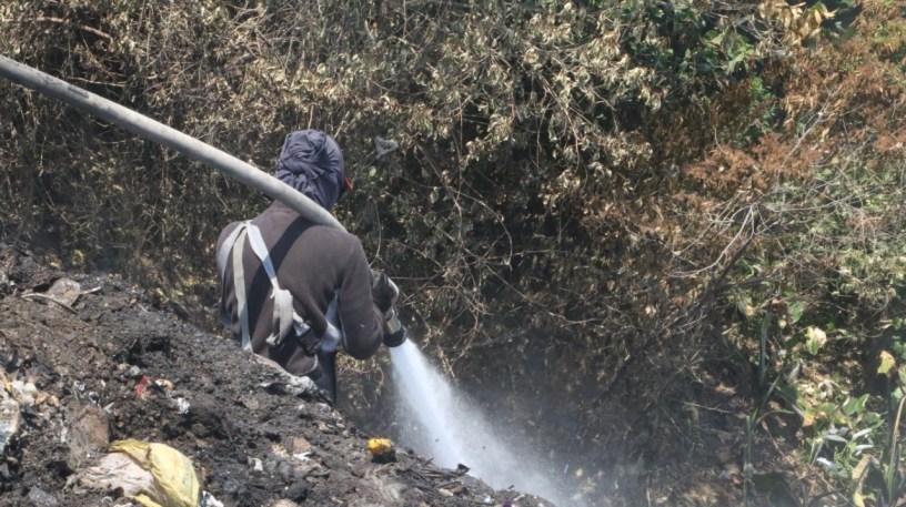 Nanchital, Ver. – Con el apoyo de Protección Civil Estatal, este día elementos de PC Municipal se encuentran trabajando intensamente en sofocar el incendio al interior del basurero.