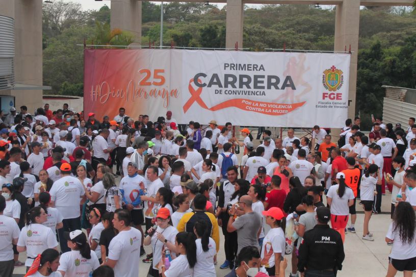 XALAPA, Ver; 24 abril 2022.- En la víspera de la conmemoración de la campaña #Únete Día Naranja y con el objetivo de promover la salud y la fraternidad entre las y los servidores públicos, la Fiscal General del Estado, Verónica Hernández Giadáns, participó en la “Primera Carrera de Convivencia 5K por la No Violencia Contra la Mujer”.