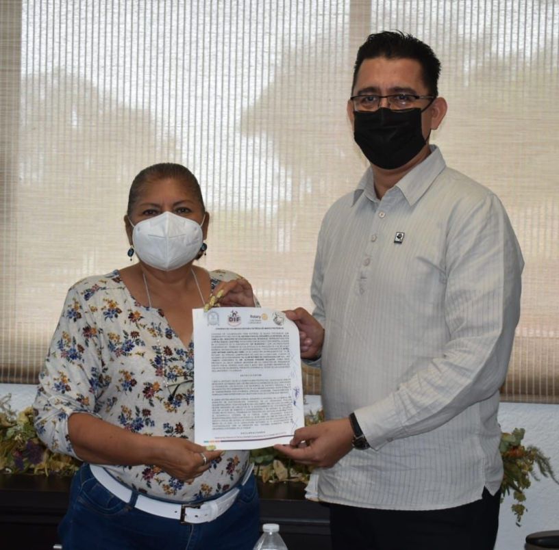 Coatzacoalcos, Ver a 26 de abril de 2022. El DIF Municipal Coatzacoalcos firmó un convenio de colaboración con el Club Rotario Coatzacoalcos, para impulsar juntos la campaña “Te damos una Mano” que pretende beneficiar a más de cien personas de seis a cien años de edad, que requieran una prótesis de mano.