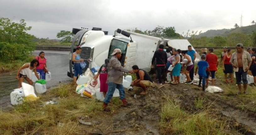 Moloacán, Ver. – Pobladores cometieron actos de rapiña, tras la volcadura de un camión, que transportaba insumos para hospitales, sobre la carretera Coatzacoalcos-Villahermosa en las cercanías del poblado Nuevo Teapa, al sur de Veracruz.