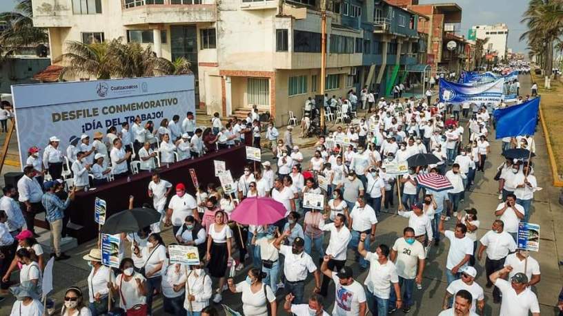 Para conmemorar el 1 de mayo, estipulado como el «Día del Trabajo», el Presidente Municipal de Coatzacoalcos, Amado Jesús Cruz Malpica, acompañado de su cuerpo edilicio y más de 2 mil 900 agremiados de la región sur de Veracruz realizaron el tradicional desfile.