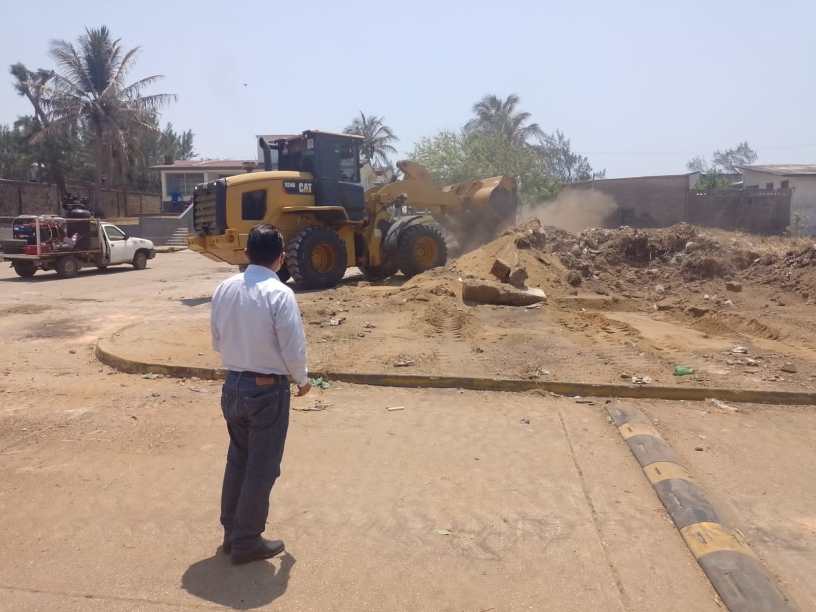 A una semana de iniciar sus funciones, Trujillo Hernández acompañó al personal de la dirección de Obras Públicas municipales a inspeccionar el lugar donde inició la demolición de las bardas del terreno donde arrancará la edificación del banco de Bienestar que se ubicará sobre las calles Arteaga esquina Cuauhtémoc de la colonia Libertad.