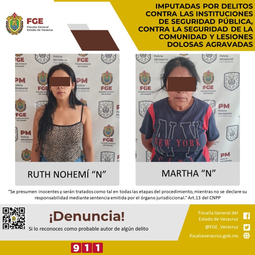 Martha “N” y Ruth Nohemí “N” fueron imputadas por los presuntos delitos contra las instituciones de seguridad pública, contra la seguridad de la comunidad y lesiones dolosas agravadas, dentro del Proceso Penal 102/2022.