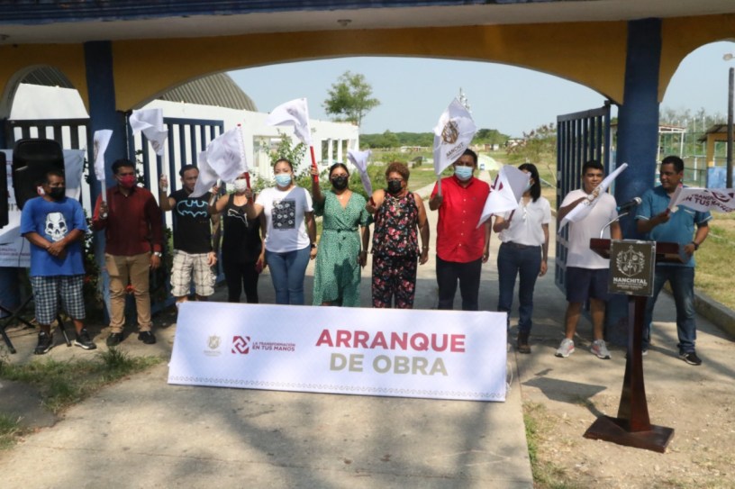 Nanchital, Ver. – La mañana de este martes, autoridades municipales encabezadas por la Alcaldesa Esmeralda Mora Zamudio, dieron el banderazo de arranque a la Rehabilitación Integral de la Unidad Deportiva, en la colonia Guadalupe Tepeyac. Esta obra tendrá una inversión superior a los 2 millones 403 mil pesos.