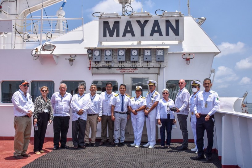 Durante su discurso, Amado Cruz explicó que el ferrobuque Mayan es el segundo barco que se mandó a construir a China, particularmente a Cantón, en el sureste de ese país, cuyo origen presagia un buen augurio de su futuro relacionado con esta ciudad.
