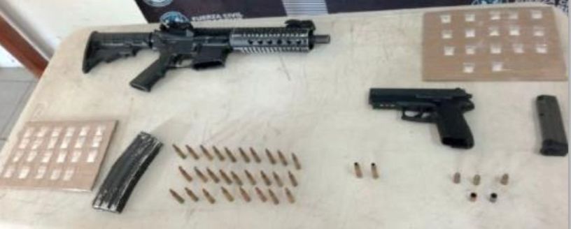 Les fueron asegurados, dosis de enervantes, dos armas de fuego cortas, cartuchos útiles, cargadores y un vehículo Jetta placas YTH873A.