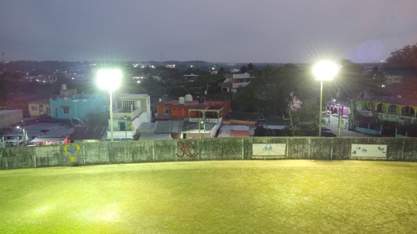 En el caso de alumbrado público, en sus 5 postes se tienen en funcionamiento reflectores, los cuales abarcan una gran iluminación al extenso terreno, en donde igualmente se practica atletismo, zumba y entrenamiento de fútbol.