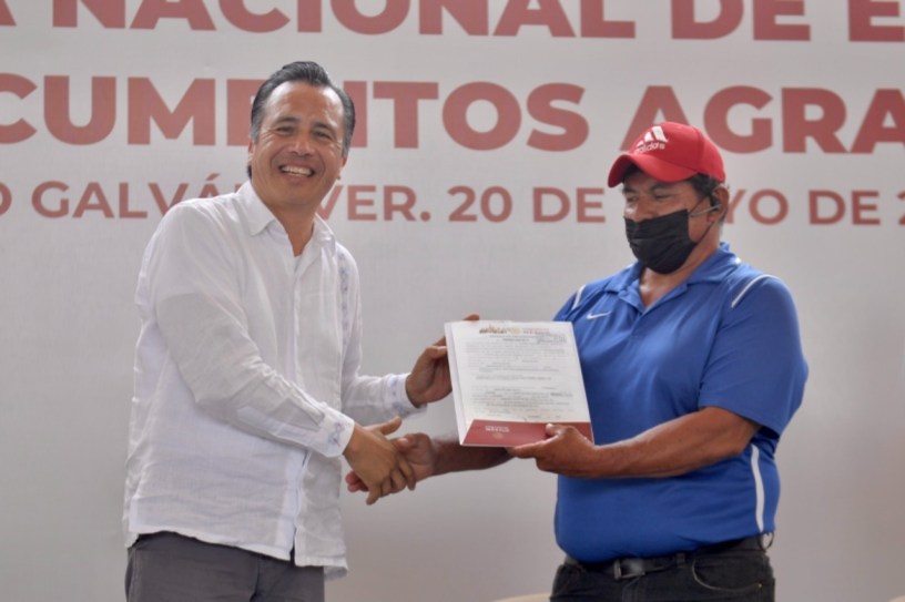 DIARIODEALLENDE.COM.MX Úrsulo Galván, Ver., 20 de mayo de 2022.-* El gobernador Cuitláhuac García Jiménez consideró la entrega de títulos de propiedad y certificados parcelarios como una retribución al trabajo de mujeres y hombres que hacen producir la tierra, también resultado de la suma de esfuerzos de los tres órdenes de gobierno.