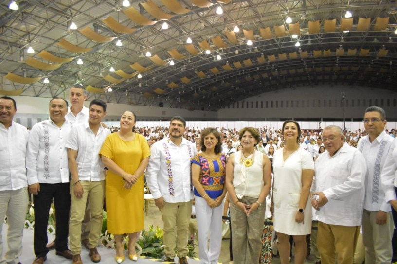 Boca del Río, Ver., 27 de mayo de 2022.- Más de 2 mil docentes de Campeche, Chiapas, Quintana Roo, Tabasco, Veracruz y Yucatán, se reunieron en el World Trade Center (WTC) para la presentación del Reconocimiento a la Práctica Educativa, encabezada por la secretaria de Educación Pública (SEP), Delfina Gómez Álvarez, y la titular de la Unidad del Sistema para la Carrera de las Maestras y Maestros (USICAMM), Adela Piña Bernal.