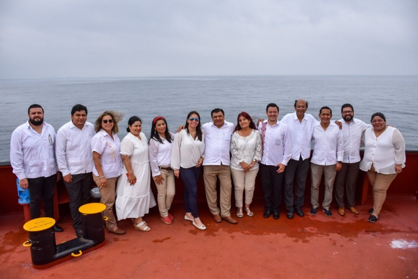 Los ediles acompañaron a los marinos a un recorrido en altamar a bordo del Buque de Abastecimiento Ehécatl de Petróleos Mexicanos y allí también arrojaron una corona de flores.