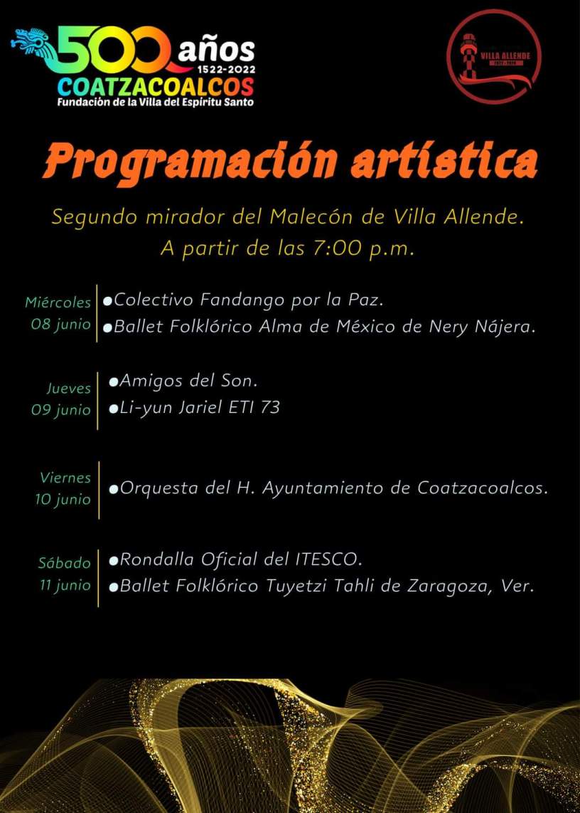 Del 8 al 11 de junio en el segundo Mirador del Malecón ribereño de villa Allende se realizarán diversas actividades culturales cada noche a partir de las 7:00 p.m de hoy miércoles.