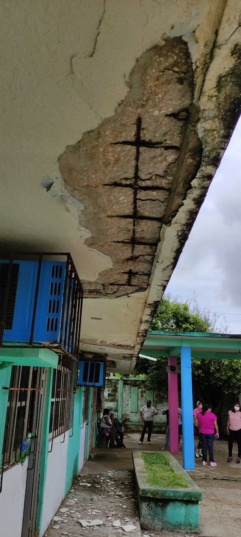 La losa de los seis salones de clases presenta fisuras y desprendimiento de concreto que incluso hoy martes estuvo a punto de caerle a una menor estudiante de primer grado.