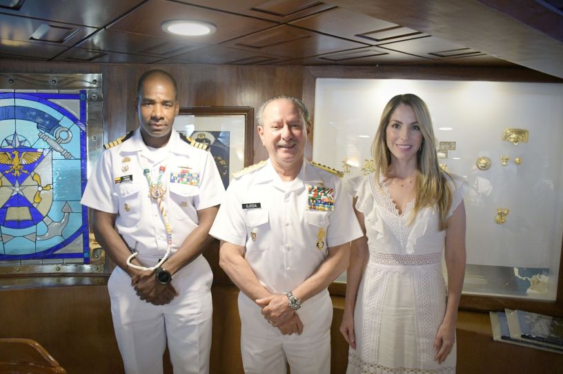 Veracruz, Ver., 25 de junio de 2022.- Este sábado, en el buque «Gloria» de la Armada de Colombia, la alcaldesa Patricia Lobeira de Yunes se reunió con el Secretario de Marina, Almirante José Rafael Ojeda Durán.