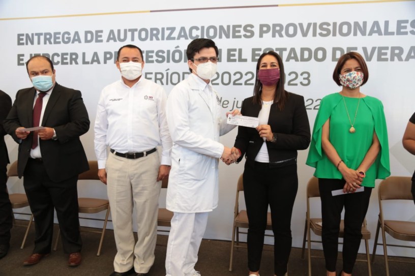 Xalapa, Ver., 30 de junio de 2022.- La Secretaría de Educación de Veracruz (SEV), a través de la Coordinación de Profesiones, entregó 214 autorizaciones provisionales a egresados para ejercer como pasantes dentro de la entidad, durante un año (2022-2023), en las áreas de odontología, medicina y enfermería. Lo anterior contribuye a cubrir la demanda de trabajadores de la salud.