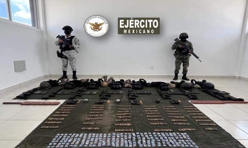 Veracruz, Ver. – En cumplimiento a la Estrategia Nacional de Seguridad Pública y la Política de Cero Impunidad del Gobierno de México, en Veracruz, integrantes de la Guardia Nacional (GN) en coordinación con el Ejército Mexicano, aseguraron armamento, equipo táctico presuntamente utilizado por la delincuencia organizada y aparente droga.