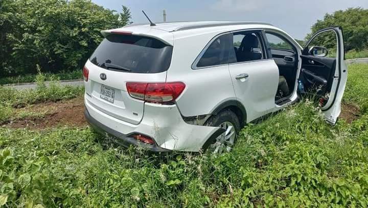 Debido al percance, se salieron de la carretera, aunque el chofer controló la camioneta evitando una volcadura.