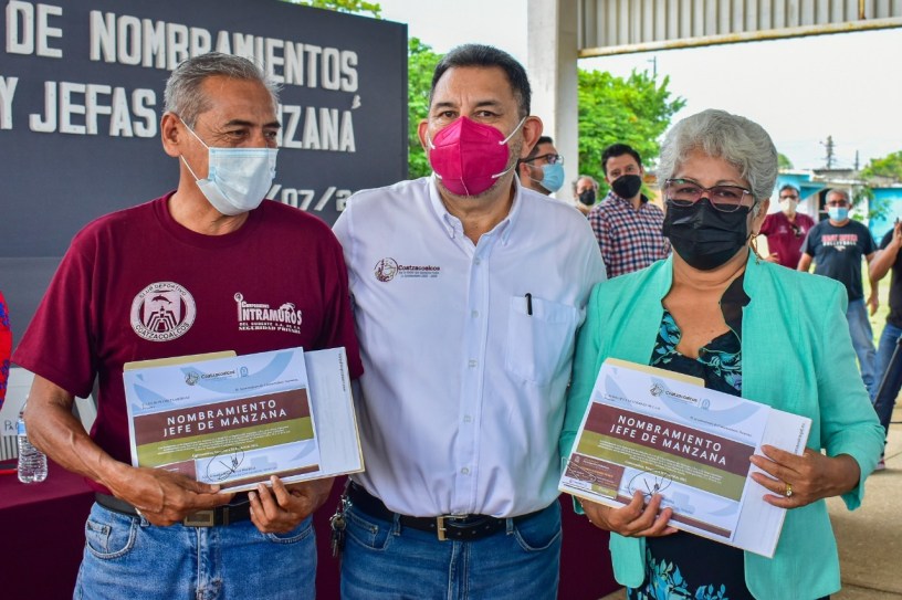 Este sábado, el mandatario municipal en compañía de la Directora de Participación Ciudadana, Tania Pamela Mijares Díaz, entregó 152 nombramientos a ciudadanos de las colonias: Ampliación López Mateos, López Mateos, Coatzacoalcos y Ejidal.