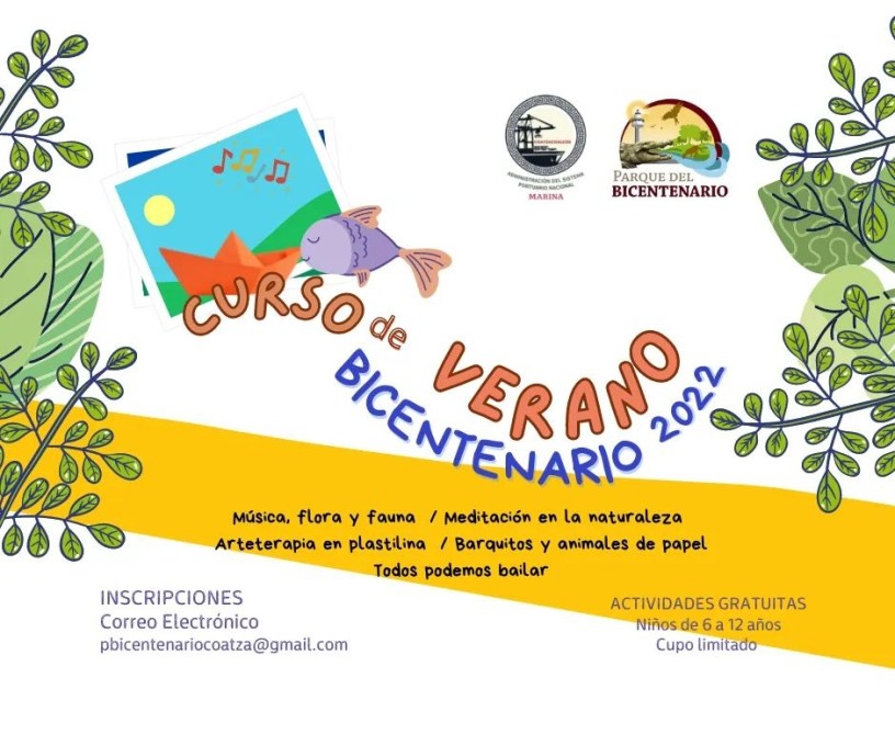 El Curso de Verano Bicentenario 2022 contará con diversas actividades como: arteterapia, son jarocho, meditación, papiroflexia y danza fomentando el respeto y conservación de la naturaleza y tradiciones.