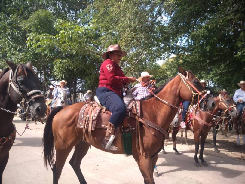 Encabezada por la alcaldesa Mariela Hernández García, quien por cierto lució estupenda con su atuendo, más de 100 caballos con sus respectivos jinetes salieron del lienzo charro ubicado en la colonia Aviación.
