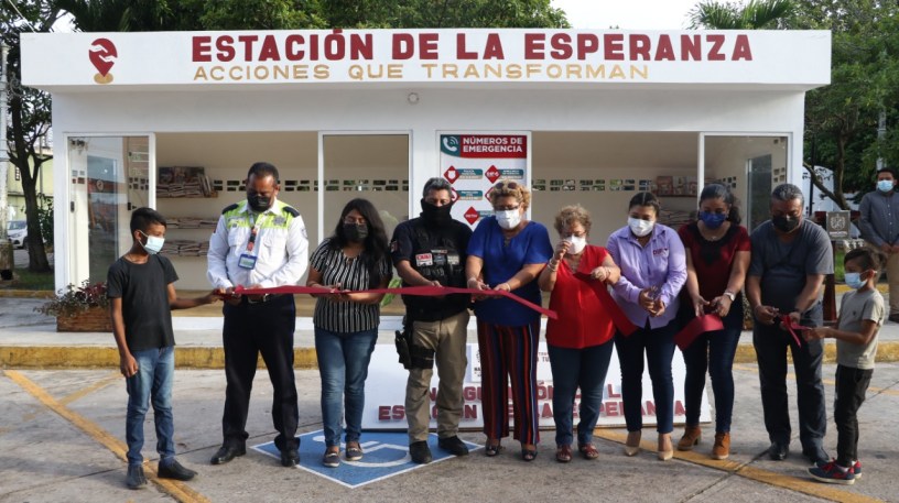 Nanchital, Ver. – Esta tarde, la Alcaldesa Esmeralda Mora Zamudio llevó a cabo la inauguración de la «Estación de la Esperanza», en la Plazoleta Lázaro Cárdenas, creando así un punto de encuentro para la convergencia de la buena voluntad, a favor de los que menos tienen.