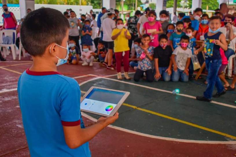 Previo a la función, los niños observaron a detalle una presentación de robótica por parte del grupo Yoo Steam.