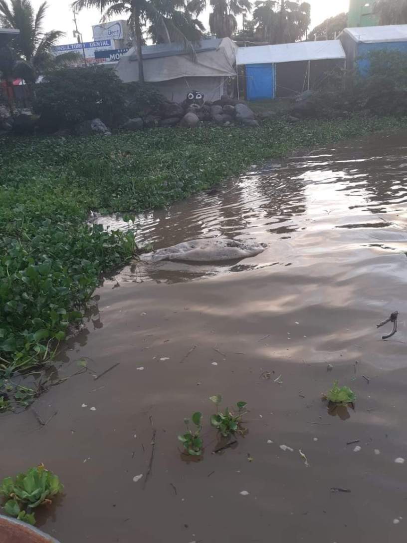 Pobladores de villa Allende captaron a un manatí que estaba muerto y era arrastrado por la corriente del río Coatzacoalcos.