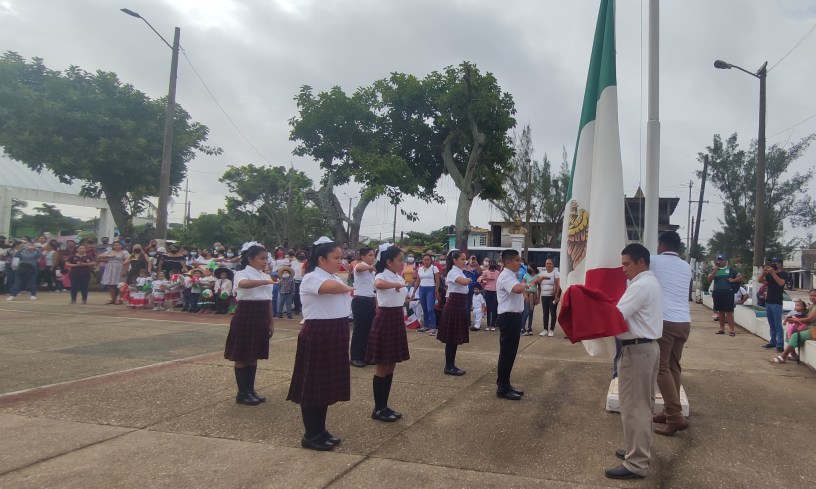 El acto cívico estuvo dirigido por el jardín de niños Montes de Oca a cargo de la directora Lourdes Mishell García Bacalo.