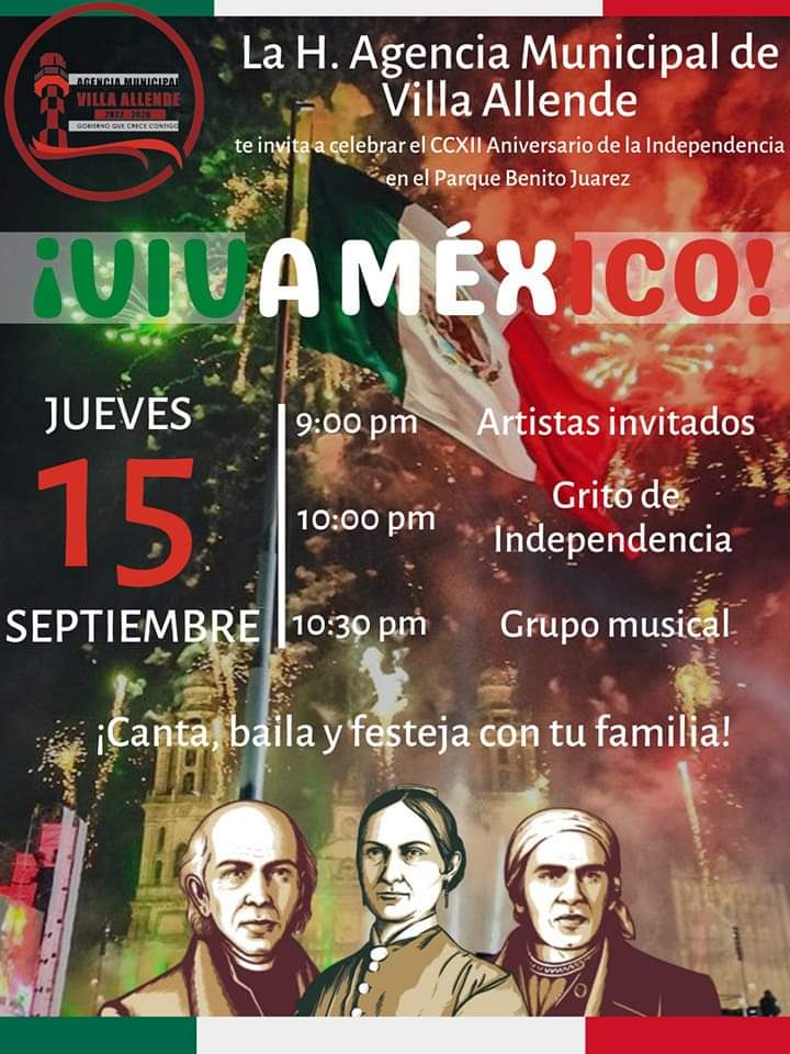 Mientras que para el día viernes 16 de septiembre se llevará a cabo la ceremonia cívica y el desfile por las principales calles de la Villa de Allende.
