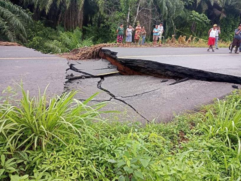 Por suerte ninguna unidad o persona resultó afectada por este daño a la carretera, que ya preocupa a comerciantes y transportistas, debido a que es mediante esta vía que se comunican de un poblado a otro de forma diaria.