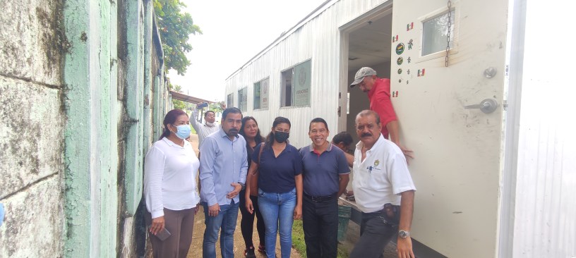 Esta mañana, Trujillo Hernández acompañado por el director de la escuela Jorge Luis Navarro Selva e integrantes de la Sociedad de Padres de familias, recibieron la unidad tipo camper que servirá como aula para 52 alumnos de segundo y cuarto grado que tomaban sus clases en una área al intemperie del plantel.