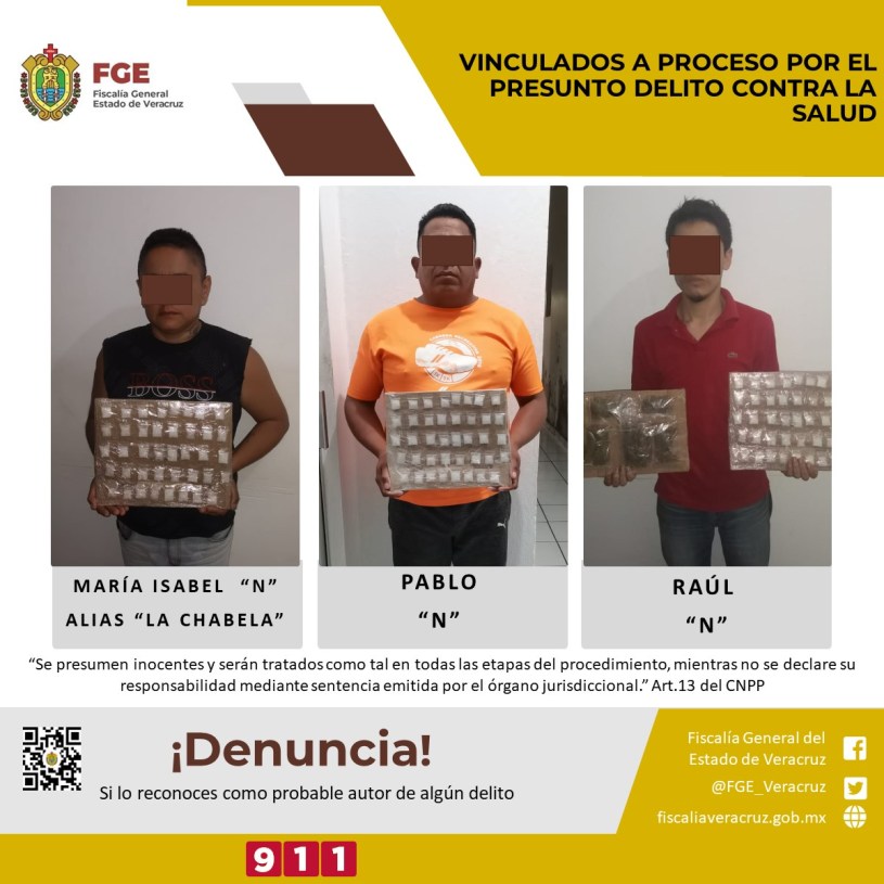 COATEPEC, Ver; 13 de Octubre del 2022.- La Fiscalía Regional Xalapa obtuvo vinculación a proceso en contra de María Isabel “N” alias “La Chabela”, considerada como principal distribuidora de droga en la región, Raúl “N” y Pablo “N” por el presunto delito contra la salud.