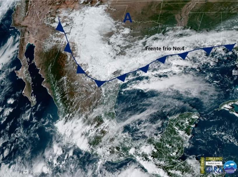 Veracruz, Ver. El frente frío No. 4 (línea frontal y sistema de alta presión constituido por una masa de aire frío) se localiza esta tarde sobre el norte del Golfo de México. Se prevé que este sistema recorra la entidad veracruzana a partir de la tarde-noche del martes a tarde del miércoles. A su paso provocará los efectos siguientes: