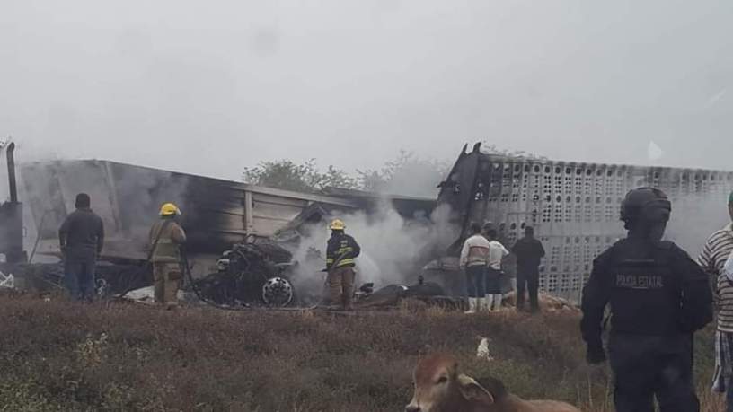 Las unidades involucradas fueron un tractocamion de caja seca y otro que transportaba ganado; el choque se registró por alcance sobre el mismo carril que conduce al municipio de Ciudad Isla, mismo que fue cerrado durante más de una hora.